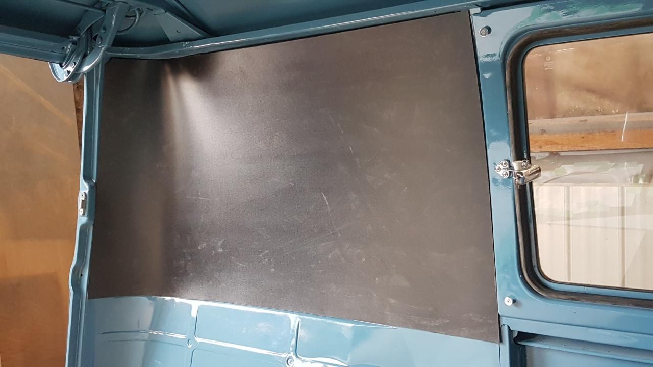 das könnte ich damals gewesen sein. Ich hab mir vor langer Zeit mal eine Schablone (für Bus mit breiter Heckklappe !) angefertigt, konnte damals ein gutes Originalteil abpausen. Ich hab mir diese Verkleidungen dann aus Karosseriepappe geschnitten (das ist das gleiche Material wie die vorderen Türverkleidungen oder Fussraumverkleidungen der Transporter). Die Pappen sind ca. 2 - 3 mm dick und damit vergleichsweise "flexibel" um diese Kurve herum, ich hab sie aber auch eine Weile befeuchtet und um ein entsprechend dickes Rohr vorgebogen getrocknet damit sie in der Kurve nicht zuviel Spannung hat oder knickt. Hat sich in situ jahrelang bewährt. Werde mir aber demnächst ein paar neue rausschneiden müssen, hatte die alten während der Resto ungünstig gelagert :-(