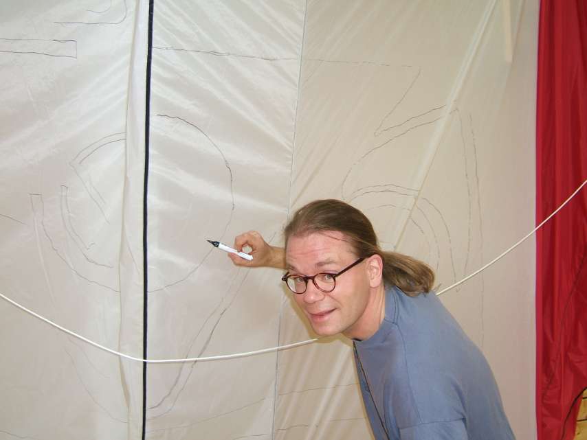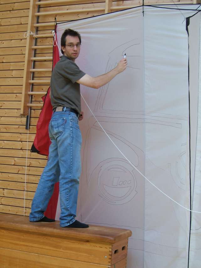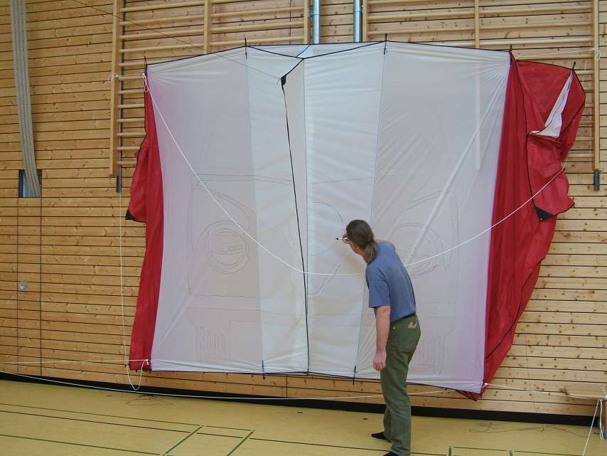 Drachenbau: Der Double Parasled mit dem Busgesicht